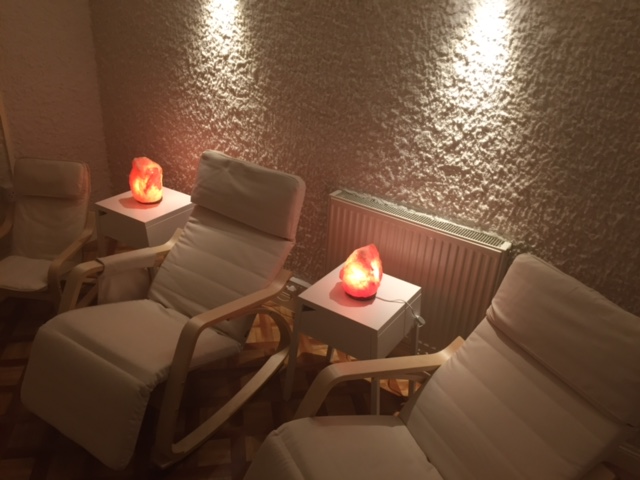 Salt room therapy is halotherapy. During session special equipment blows the salt in to room. Dry salt aerosol produces surrounding that heals. Salt has antibacterial and anti inflammatory properties. Also it has relaxing bronchi and mucus fluidizing effect.